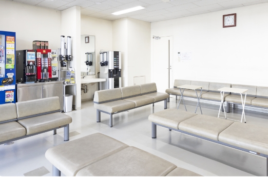 自販機やコーヒーメーカーがある休憩スペースを設けています。 ちょっとしたブレイクタイムを楽しめます。